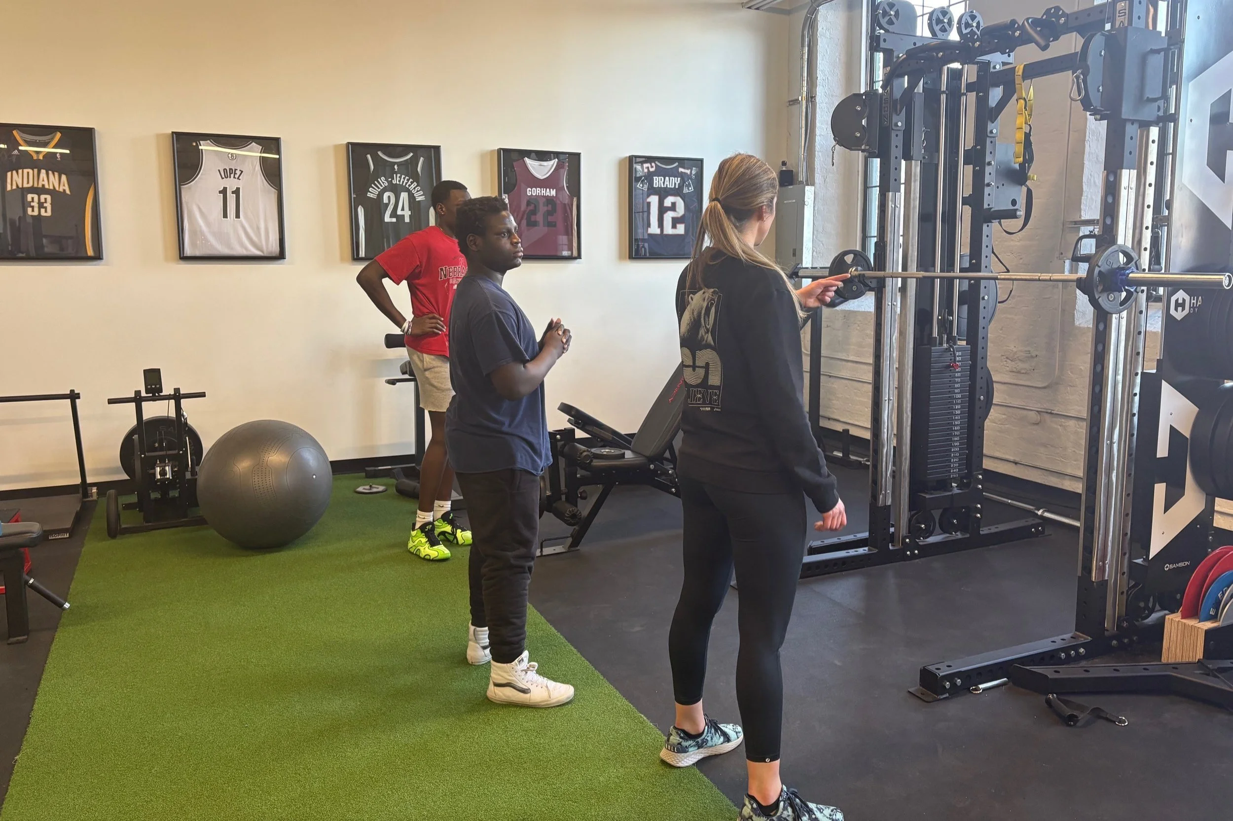 Force Plates: These allow us to measure ground reaction forces, jump symmetry, landing mechanics, and power output. Small deficits that are invisible to the eye become clear, helping us address weaknesses before they lead to reinjury.